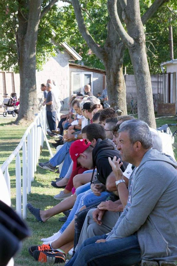 Pekný polčasový moment: Ladislav Lörincz st., predseda ObFZ Nitra Štefan Korman, Milan Lörincz, Ladislav Kazán, Ladislav Lörincz ml., Roland Lörincz. V popredí nádeje futbalu v Branči - Ádám a Šimon Csámpayovci.