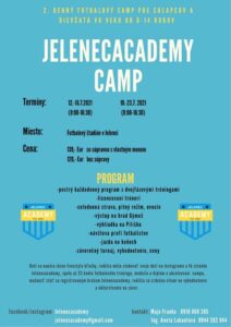 Štadión Adama Nagya bude opäť raz poctený výbornou organizáciou futbalového podujatia, na aké sme v Jelenci zvyknutí. Partia okolo hlavnej menežérky Anet Labantovej, trénerov Markusa Šinku, Maja Franka a Adriána Kukučku sú opäť odhodlaný v termínoch od 12.-16.7. a 19.-23.7. 2021 urobiť pre mladé talenty nezabudnuteľný zážitok.
